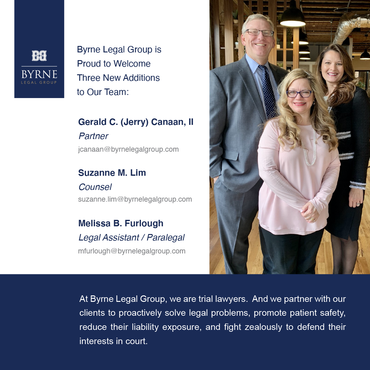 When our team decided to launch the Byrne Legal Group we took inspiration from our health care provider clients. Our clients do what they do because they live to serve and help people in need. They heal the sick, fix the broken, and save the dying. But as good as modern medicine is, the dedicated people who work in the field are never satisfied with the status quo and are always working to improve. Same here.