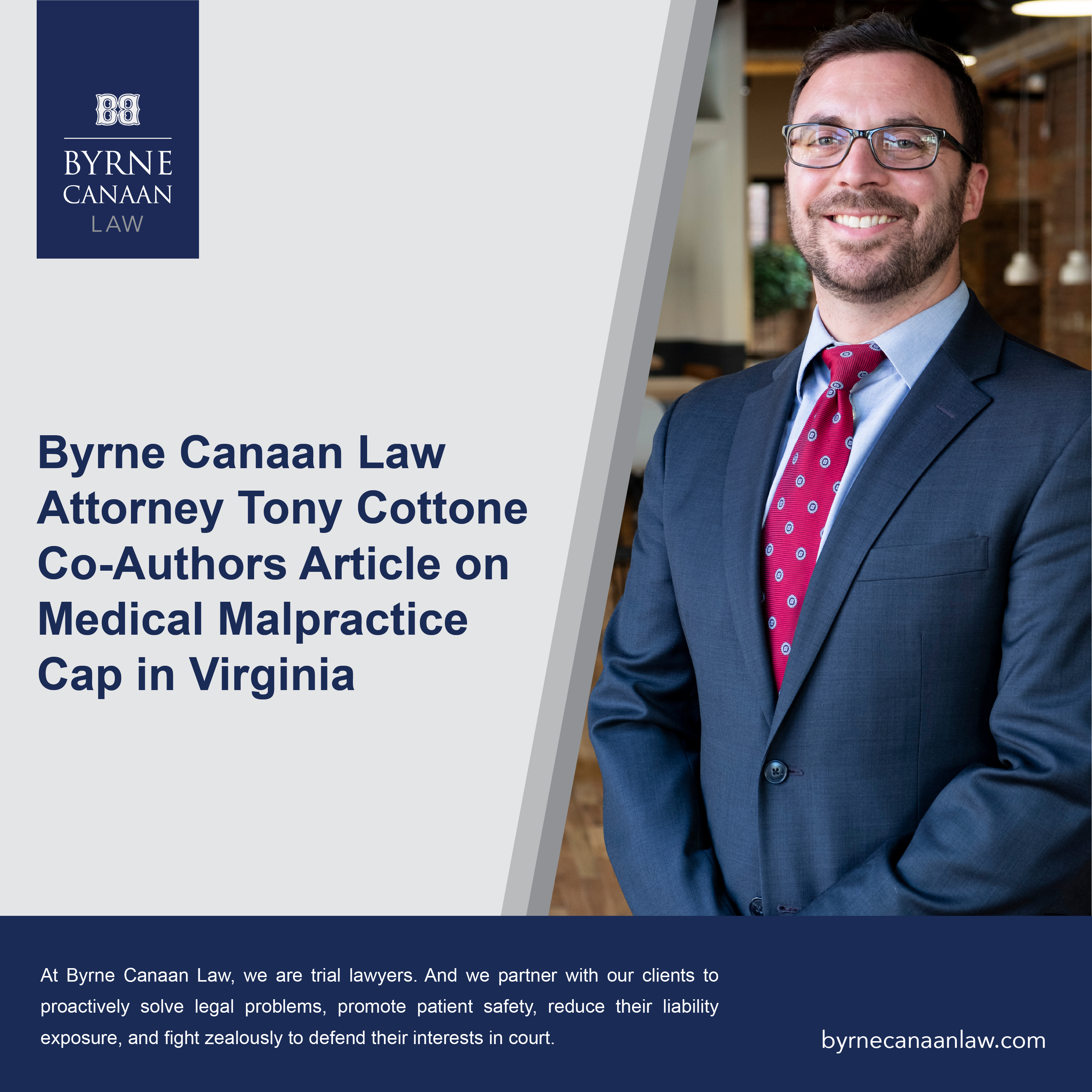 Byrne Canaan Law Attorney Tony Cottone co-authored an article recently published in the Virginia Association of Defense Attorneys (VADA) Journal of Civil Litigation. The article discusses the medical malpractice cap in Virginia. The Journal of Civil Litigation is an exclusive publication that is sent to every VADA member. The full article is linked here.